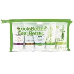 Le kit contient 5 produits de votre quotidien, pour votre hygiène et votre beauté dont, une crème pour visage aloe, un forever brigth touthgel (dentifrice) un aloe shampoing jojoba et un aloe jojoba conditining (après shampoing) + 1 produit cité précédemment doublé.
